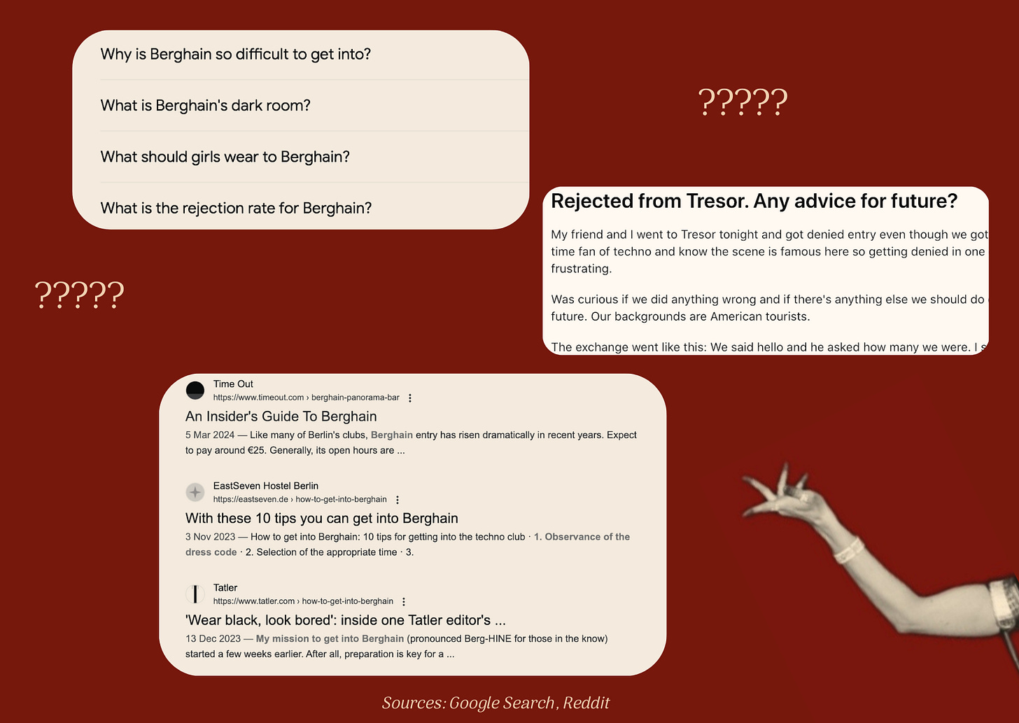 Apparently, it’s common for people to be turned away at the door, even with a ticket, if they don’t match the "vibe" (a vibe that's subjective and decided by the bouncers). The idea behind this is to preserve the integrity of techno music by ensuring that only those who truly appreciate the genre get access — and that sharing it with others would taint the genre.